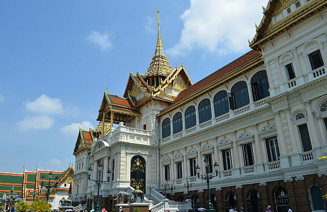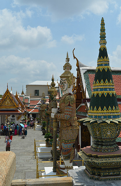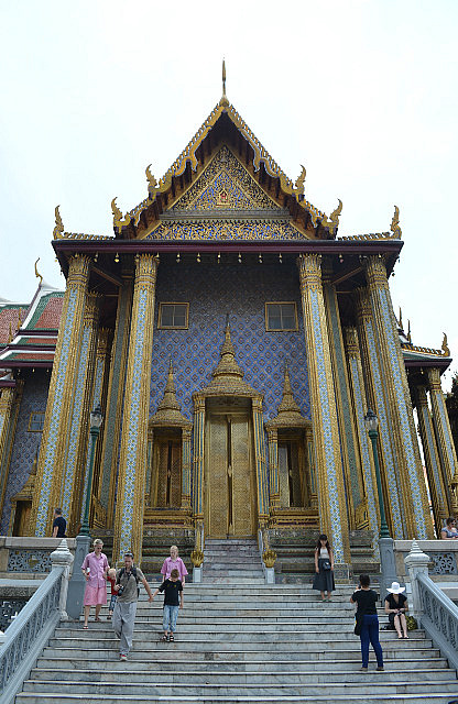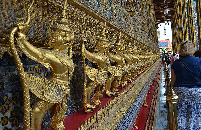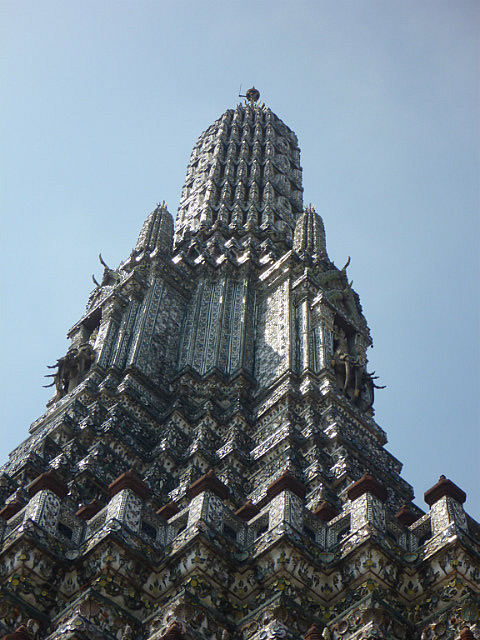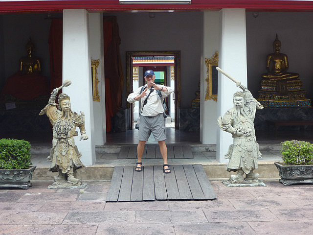 Our last day in Bangkok was spent doing a bit more shopping (!) and then we took a Tuk-Tuk (with my heart in my mouth) to the Royal Palace where we spent about 3-1/2 hours walking around in the very hot sun, frantically looking for a bit of shade or breeze to try and cool down. Saw some truly amazing sights (all decorated with a fortune in gold leaf) but I have to say that the dress restrictions when visiting the Royal Palace mean that you can’t dress coolly and as a consequence, melt! Nick finally got to have his Pad Thai, his favourite dish, in Thailand.