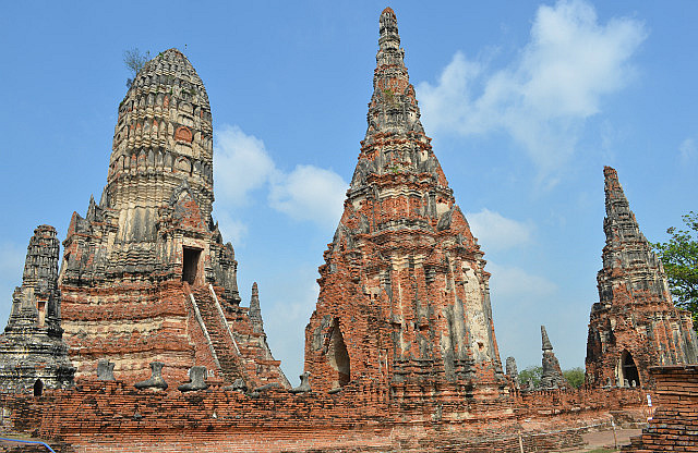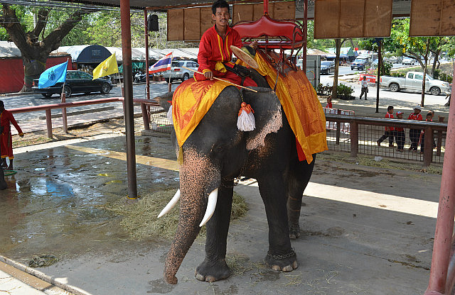 On Wednesday, we headed north to a placed called Ayutthaya, which used to be the capital of Thailand until it was destroyed by the invading Burmese Army. So, the highlight of Ayutthaya is the 500+ Temples, most of which were in ruins. I am now an expert of the four different styles of temple – Chinese, Khmer, Ceylonese & Thai as well as the difference between a Stupa and a Chepa (none) and can explain this auf Deutsch – the other people on the tour were from Berlin and whilst they spoke some English, they had trouble understanding our Tour Guide, so I was able to step in to assist! We also visited the Elephant Kraal which is where they used to catch wild elephants and had an elephant ride! Yes, I know that we’re being the ultimate tourists, but I don’t care! After lunch, we had another boat ride through the three rivers which surround the island of Ayutthaya.