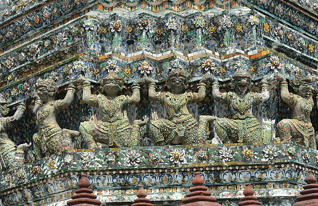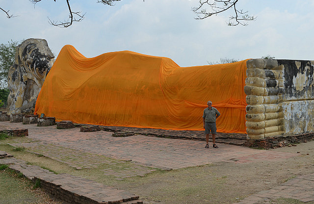 We had decided to do a few tours as I hadn’t been to Bangkok before and it just seemed simpler, so we booked to do a Klong Tour, a “taste” of Thai culture Dinner Show and a day-long tour which would take us to Ayutthaya. For those of you who haven’t been to Thailand, a Klong is what they call their canals. So our tour was in a Long Boat and we had a buzz (literally) scooting around the canals before visiting the Temple of Dawn (Wat Arun). Now this entire Temple is covered with decorations made from ceramics. OK, so they decorated it, but we found out that apparently King Rama III ordered a huge supply of porcelain crockery from China and by the time it arrived, it had all shattered. So what do you do with a load of shattered plates, bowls & cups? You use it to decorate your newest Temple! In the afternoon, we struck out on our own and managed to get to Wat Pho despite one Tuk-Tuk driver wanting to charge us 500 Baht for a one-way trip! We settled on a nice air-conditioned taxi for the grand sum of 150 Baht. We had a hot afternoon walking around looking at the Reclining Buddha at Wat Pho, we tried counting the number of statues of Buddha but kept on losing count. All I can say, there were 100s of the things! After a hot afternoon with much walking, we treated ourselves to a WONDERFUL massage at the Massage School at Wat Pho. Nick had a Thai Massage (without any extras) and I had a totally drool-inducing foot massage!