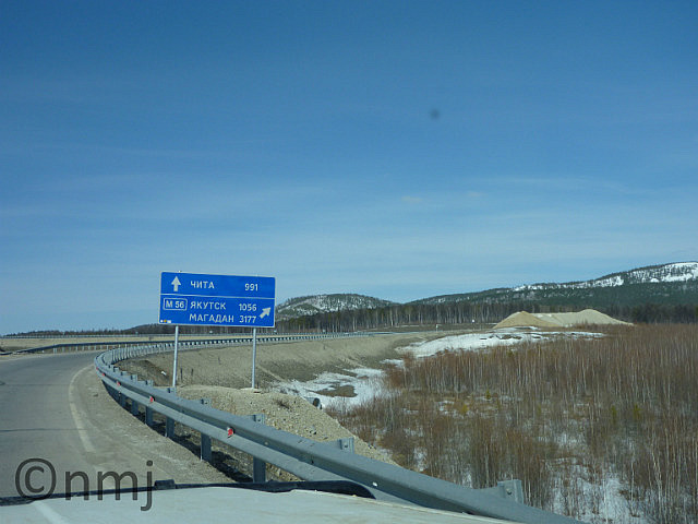 The road conditions after Svobodnny have generally been better – maybe because this section of road is the newest. But even if it’s only 2 winters old, there is the amazing sensation of driving over a mini-dipper. Apparently, the ripples (only word to describe) is caused by the permafrost and freezing/thawing of the ground underneath the road. On a couple of stages, there has been quite a heavy cover of ice and snow on the roads which tend to make the driver very tense. Sometimes, you will be lucky and find that a snowplough has been along that section of road, but don’t get stuck behind one because trying to pass it requires blind hope! Blind because you are in a total whiteout caused by the snow blown around by the snowplough! We’ve seen some trucks that are getting picked up by a crane from where they have gone over the side of the road and lost their load. But, on the whole, the driving has been a lot of fun and the car is putrid!