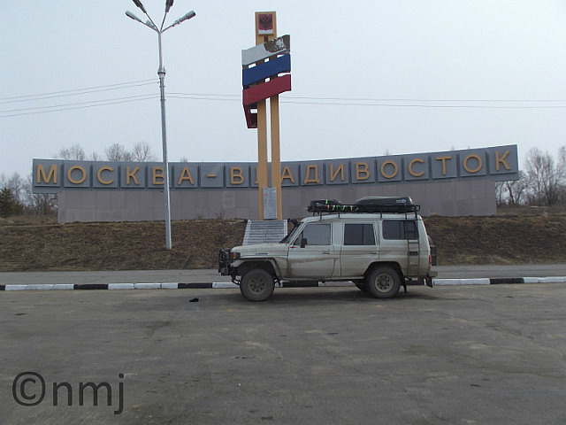 After leaving the little township of Arkhara, we passed a big monument which commemorates the completion of the road between Moscow and Vladivostok. At least, we think that what it is about. Anyway, it looks very spectacular in the middle of nowhere! We have explored the delights of some Russian townships – Arkhara and Svobidnyy, which represent extremes of Russian friendliness. At Arkhara, the accommodation was very basic but when we asked about a café or somewhere to eat, one lady took Nick to the Café and went inside to warn them about the pending arrival of two non-Russian speakers who would require a feed. And then in Svobodnyy – there was no hot water (still haven’t worked out why), what water there was, was brown and I wouldn’t have offered it to my dog to drink, and when we asked where the café was, we were pointed in a general direction. Sadly, Svobodnyy doesn’t win any points for friendliness or helpfulness.
