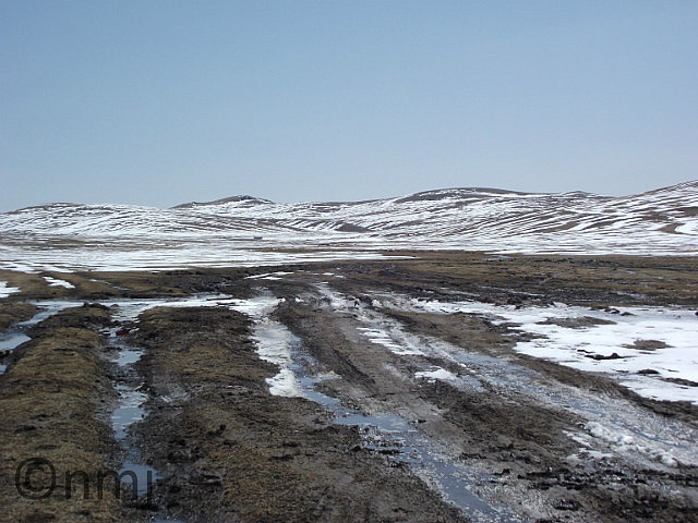 The road was bitumen, mostly, and whilst there were sections with potholes and chasms, we managed to make pretty good time. We reach a T-intersection, which was about 15 kms east of Kharkhorum (for the uninformed, Kharkhorum used to be the capital of Mongolia) and about 120km away from Tsetserleg, and turned right (that’s west). You can imagine our surprise to find that the road from the T-intersection to Kharkhorum was dirt, which turns to mud when mixed with melting snow. Yes, that’s right, we have climbed up as we headed west and found snow again! Thankfully, not the falling variety, but still not good for driving conditions. We had a few hiccups getting through Kharkhorum and finding the road to Tsetserleg but once we did, we were stoked to see that it was bitumen again, even though potholed and bumpy. On arrival in Tsetserleg, we took a bit to find the Guesthouse but we did, eventually, and we happy to find that the manager spoke very good English, even if rather Americanised, but we were mildly amused to learn that the owner (or Proprietor) was an Aussie. Sadly, we didn’t get a chance to meet him. However, Nick was able to talk to Sarah about road conditions south from Tsetserleg and after what he heard, we decided to backtrack to Kharkhorum and the T-intersection and head down to the southern route that way.