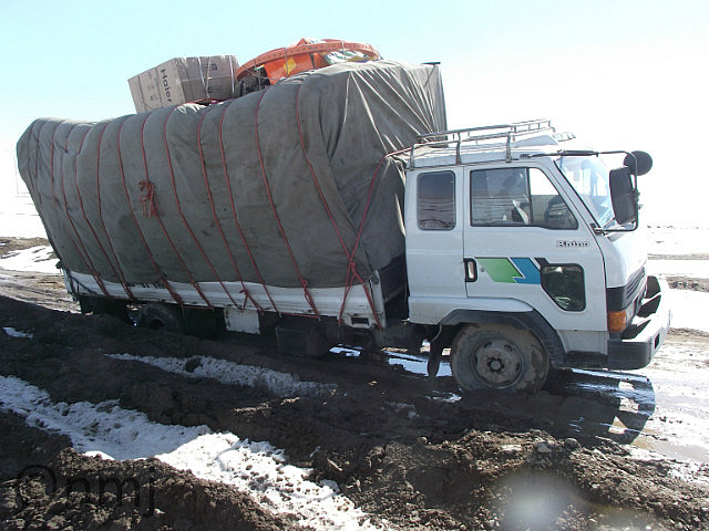 Anyway, I’ll get off my little soap-box now – so, we are on the way to Arvaikheer and had to battle with good old-fashioned mud! But before we got to the mud, when we first came upon the dirt road, we were a bit trepidatious about which way to go, but after about 15 minutes of driving, we passed by a Subaru Impreza. Great, we thought, we can keep his dust cloud in sight and follow him. This worked fine until we got to the mud and found the Impreza nose-first in a muddy water-crossing. We got across the crossing, and used our winch to pull the car out. We thought that as we had been using his dust cloud as a navigation device, it was only neighbourly. They set off and were looking for a way through the bog. I suppose that I should mention that we were driving across a valley floor, which had a lot of water soak and therefore it was very muddy and boggy. Anyway, Nick passed them in full 4WD mode (Low 4WD and both diff locks engaged) and proceeded to get bogged! The three male passengers of the Subaru came over to help us, as well as a Mongolian shepherd on his horse to give directions from his perch. Nick got to deploy his Maxx Trax which seriously impressed the Mongolians. After much spraying of mud and getting thoroughly dirty, the troopy was un-bogged and we all set off again. Within about 2 minutes, the Subaru was bogged again, and so this time we deployed the Maxx Trax AND the winch. They were all happy campers and Nick was happy to have used some of his toys and felt justified in the expense. So we continued off to Arvaikheer (or were we?). I asked Nick, are they going to Arvaikheer? Hmmmm, so after about 30 minutes or so, we encountered a Bongo-type tray-back bogged. The Mongolians in the Subaru kindly offered the use of our winch to pull the van out, which Nick did and everyone was happy. In gratitude, the passengers of the Subaru gave us a bottle with something in it to drink. “It’s good”, they indicated. Have you ever tried Fermented Mare’s Milk? If you haven’t, then don’t rush to do so! I’m not a fan of milk anyway (schoolyard milk in primary school is to blame) but this was …. YUK! Smiling nicely, we thanked them and hopped back in the car. Finally, after 50kms of mud and snow, we reach Arvaikheer and found a hotel. But the car was putrid! We wondered if there any car-washes in town and found one directly behind our hotel. In fact, it was in the yard of the hotel. For the princely sum of 10000 Turgrits (or $A7.20) the car was scrubbed and hosed within an inch of its life.