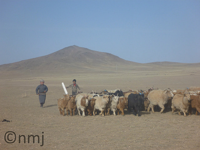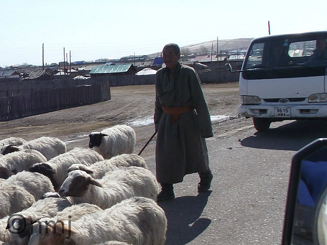 He was happily walking his flock through town (Kharkhorum)