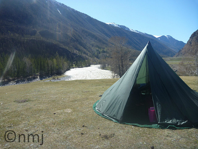 We set off enjoying the glorious bitumen – no potholes, no dirt, it was lovely! But after about 160kms of driving through some of the most glorious scenery, we found a flat spot next to a river and set up camp in the early afternoon. After the stress of the past few days, we needed some R&R. It was a lovely sunny day and we got to take the boots off and wear our Tevas and enjoy the sunshine, as well as do a bit of maintenance to make sure that the car wasn’t about to fall apart after all those kms of corrugations and potholes. Looking at the weather, we consigned the winter sleeping bags to the not-required pod and went to bed using our summer sleeping backs (rated to -5°C). BIG mistake! I woke up at 2am with two blocks of ice at the end of my legs and we were both freezing our asses off! But it was a lovely spot to camp!