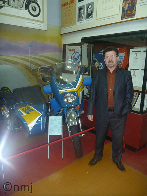So the car is now all ready to continue our journey and we were heading back to the Factory for our tour. Marina was waiting for us and took us throughout the factory and explained what happened in each section and answered all our questions. After the factory tour, Sergei took us to the Museum and introduced us to the Director. I was wondering why he felt that he had to stay with us. Anyway, as we walked around the Museum, he would point things out to me in German and I’d translate them for Nick (if he hadn’t already worked it out). Then he showed us an outfit which had set a Guinness World Record and explained that the Museum Director was one of the 4-person team who had set this records – riding the sidecar for 25,505km NON-STOP – it took 20 days!
