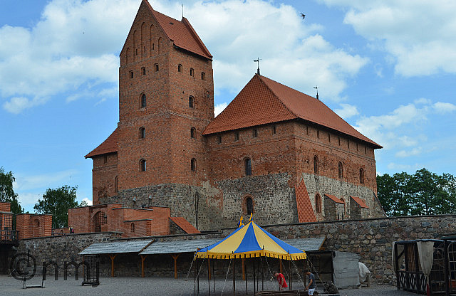 And so we headed for Lithuania, our third Baltic State. Once again, we have managed to find a campground via Eurocamping, which is a Dutch (or German) on-line Camping Club that has information about 100s of campsites across Europe. After staying at a campground in Riga, we opted for a campground outside the capital, Vilnius, and picked a place called Trakai for our base. Lithuania has lots of lakes and our campground is by a beautifully clear and very large lake called Galve Lake and there is a castle and ruins, all within about 5 kms. But we also discovered something called the Geographic Centre of Europe (as calculated by the French, so I can’t vouch for its accuracy), but Nick has said that is definitely on our list of places to explore. So many exploring opportunities!