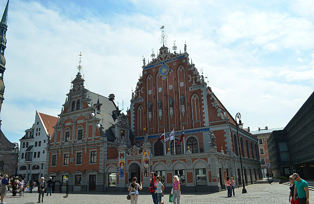 Whilst we were on the outskirts of Riga, we were near a BIG shopping centre. We reckon that it was the biggest shopping centre we had seen since leaving Australia. So we did a bit of retail exploration before heading into Riga. Now apparently Riga is renowned for its Art Nouveau architecture which either managed to survive the war or if it didn’t has been lovingly reconstructed. We saw the Blackheads House. We had heard of the Blackheads in Estonia, but thought that it was just an ad for Clearasil! But apparently, this was a highly respected guild that was named “The Blackheads” because of the patron saint of this Guild was a Moor. Anyway, they say that the Blackheads actually initiated the use of the Christmas Tree for Christmas. The first time they put a tree up in front of their Guild Hall in Riga, they decorated it and then burnt the tree down after just one night! Obviously things have been refined slightly since then!