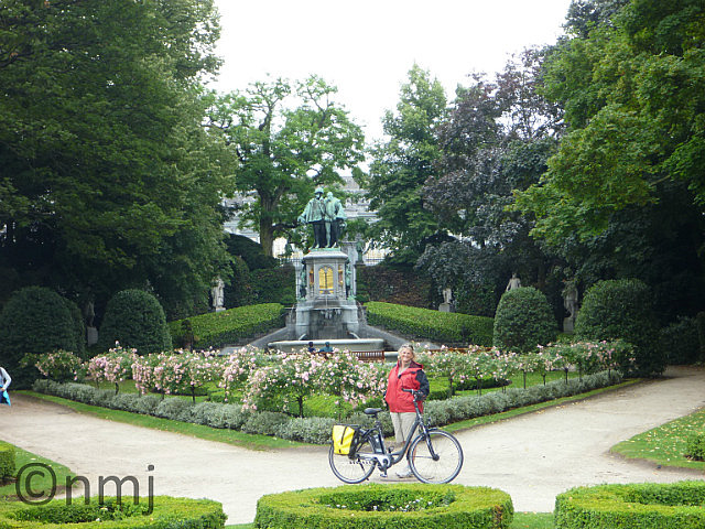 On our first day in Belgium, we were staying at a place called Dendermonde which was a train ride from Brussels (30 minutes by IC train) but our campground was about 12kms from the train station. We had decided to take our bikes into Brussels with us on our first visit, so that we could do a cycle tour around the city. At first, we were doubting whether this was a good idea because Belgian train stations are not particularly bike-friendly, but it did turn out to be a good way to explore Brussels. We covered a lot more ground that we would have on foot and saw some really lovely sights, eg a park that has 40+ bronze statues around the perimeter. Each of the statues represents a different guild such as the shoemaker’s guild, the blacksmith’s guild, etc. There were also a number of statues of “famous” Belgians in the part but the only one we recognised was Gerardus Mercator – he was the person who invented the Mercator Projection, which was found to be the best way to display a globe map as a flat map (http://en.wikipedia.org/wiki/Mercator_ projection). We discovered a new food-group – Belgian cupcakes. We were entertained with the removal of an illegally parked German-registered car – they don’t just book an illegally-parked car, they bring in a truck with a crane and pick up and take the car away! We explored the Grote Markt and the Bourse and saw the Mannekin Pis.