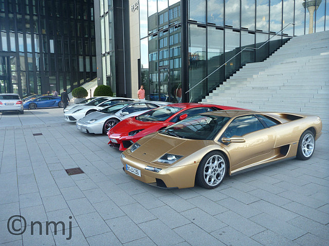 After 2 visits, we felt that we had pretty much “done” Brussells, so it was time to head into Germany for the weekend. When MJ was in Oldenburg in 2008, she made some friends who live in different parts of the world, one of whom was Anne from Finland. Anne has finished her degree and has been working Germany for the past 2 years (with a few breaks in between). She lives and works in Mönchengladbach, so off we went for the weekend. Actually, we did a farm visit – arrived on the Saturday and left on the Sunday. But we spent the afternoon catching up with Anne and all-together, we went to Düsseldorf. This was Nick’s first visit to the Rhine and it was a glorious afternoon. We walked along the Rhine, visited the Rathausplatz where we managed to find a Wine Expo espousing the virtues of wine from Rheinland-Pfalz, we sampled some of the delights of Düsseldorf – ice cream, coffee, beer & wine, we found a Lamborghini function where there were about a dozen different models all lined up, ready to drool over and finally we had dinner in a nice Spanish restaurant.