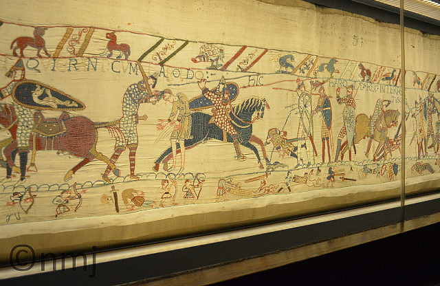 The only downside to the few days in Haut-Normandie, was it started to rain. And the rain continued when we drove to Bas-Normandie. In fact, when we were on the way to the campground, I happened to look at the Weather App on my phone and it was showing 7 days of rain! So it was easy to convince Nick that we should rent a cabin or on-site van, if they had one available. So we did but that meant that we stayed in that part of Normandy for 7 nights. We had a great time exploring the D-Day beaches and Nick got to overdose of D-Day museums and memorials, so in-between, we managed to visit a few William-the-Conqueror places, such as the Bayeux Tapestry. This is also well worth a visit – it is the most amazing piece of needlework and it is over 900 years old! Thankfully, it is now well-presented to minimise further deterioration and allows you to get a good look at the entire piece.
