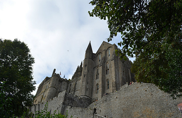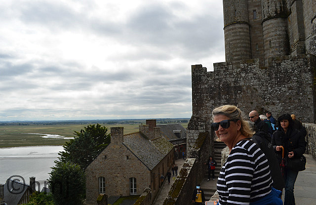 There is an old village that grew around the base of the island – the abbey is at the top of the island.