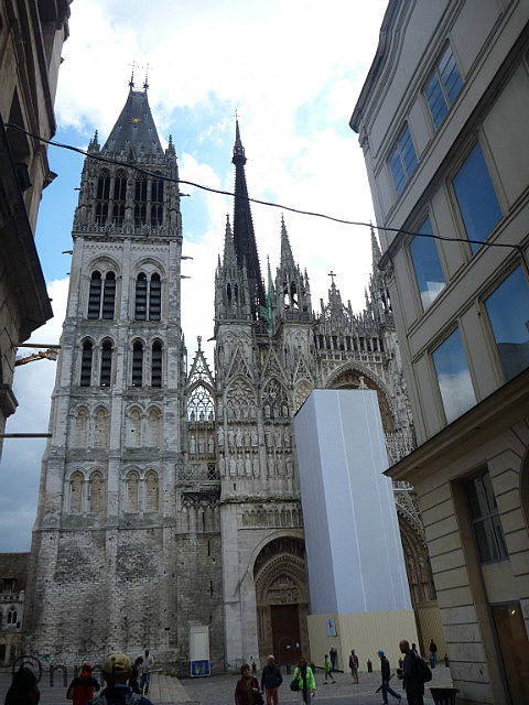After this short stop, we continued past Amiens and headed just south of Rouen to a place called Bec-Le-Hellouin and stayed at a little campground here. We had a bottle of the local Normandy Apple Cider and explored around the town before heading into Rouen for a day. Of course, we had to visit the spot where St Joan of Arc was burned (ugly modern church near the site) and visited the Cathedral and walked around the old town (after buying my French SIM card). We were amazed at how much of the old part of Rouen appeared to have been untouched by the War. But we had a great day exploring – once we finished coping with the vagaries of French trains, which didn’t stop at the local train station, and when we went to the further town, we discovered that the trains were running on a 25% of the timetable due to track works! Bloody French!!