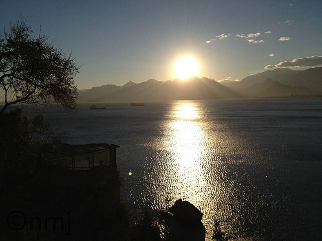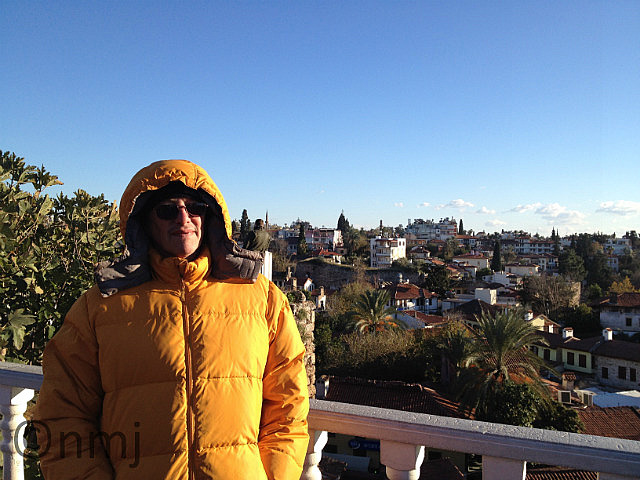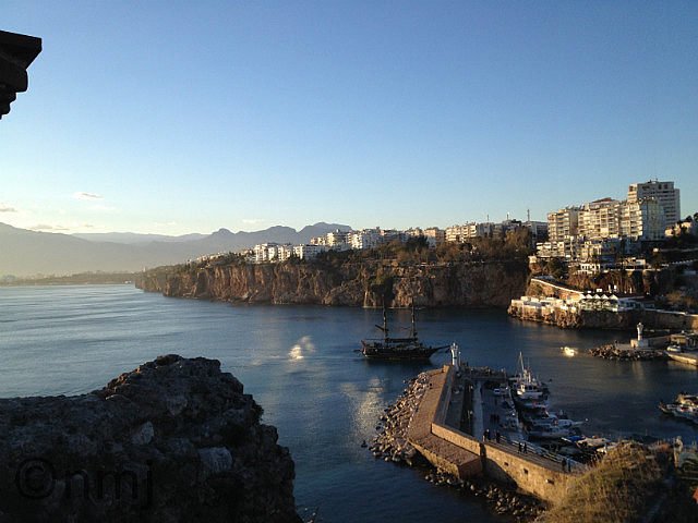Time to return to Antalya, which meant driving through the Taurus Pass which was covered with snow and a bit hairy driving through, but our very competent driver managed it with no qualms. Once we were back in Antalya, we did a walking tour through the old part of Antalya and walked through Hadrian’s Gate (he was a busy emperor, wasn’t he?) and walked to a point where we had the most amazing view across the water which, in the late afternoon (ok, so 3pm) was gorgeous. However, we did discover that as the mountains (which were covered in snow) are just behind Antalya, and the wind blows down from the mountains, which means that whilst the air temperature might be 10°C, the wind-chill factor makes it about -2°C! In other words – unbelievably cold!