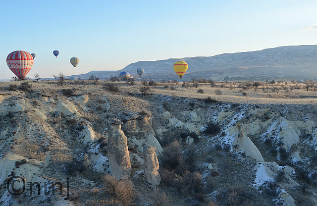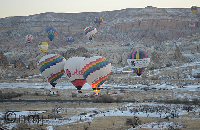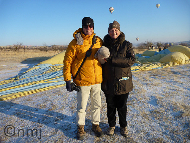 When we knew that we were going to Cappadocia, Nick promised that we would do a balloon flight. For those of you who don’t know Nick – he doesn’t like heights. Yes, that’s right, a firefighter who doesn’t like to climb ladders!! Anyway, he promised that he would do the flight with me and our guide said that if you didn’t do a balloon flight in Cappadocia, then you were only seeing 50%. So, balloon flight, here we come! Yes, it was expensive, but certainly cheaper than a balloon flight in Brisbane and much more interesting. On the morning of our flight, we could count 40 balloons in the air, which was an amazing sight! It was freezing cold but well worth getting up so early (5:45am). We took lots of photos – don’t worry, we won’t bore you with all of them, just a small selection!