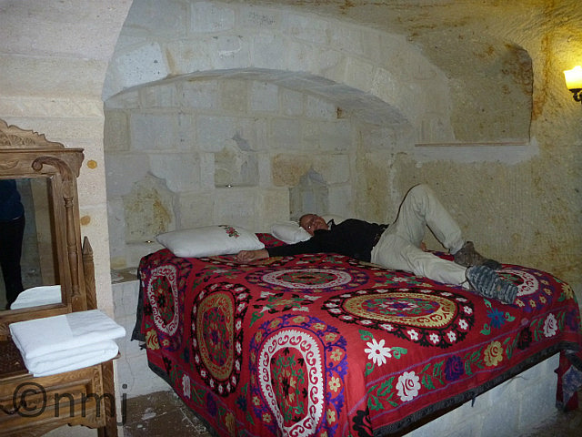 Our first night in Cappadocia was in near a place called Urgup and we were staying in a cave hotel! Our room was great! Firstly, the heating worked and was very efficient! We had a cute bathroom and the bed was “built” into a bit of an alcove.