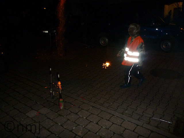 Time to do the final shop for Silvesterabend – food, alcohol, fireworks! Yep, Germany allows its citizens and visitors to buy Skyrockets, Roman candles, Catherine Wheels, Fountains, Bungers, Throwdowns from 28/12 to let off on New Year’s Eve. We joined Sabine and Jörg and Sabine’s friend, Simone and kids for dinner, fun and fireworks. Simone’s son, Samuel, is really interested in the Fire Brigade and he was so cute because he had his Fire Brigade helmet to wear and he put up a safety cordon for everyone to stand behind. And when we asked if Nick could be on the dangerous side of the cordon because he had been a firefighter, Samuel’s response was “Er war ein Feuerwehrmann” (that means “he was (heavily stressed) a firefighter”)! We all had a laugh. 😀