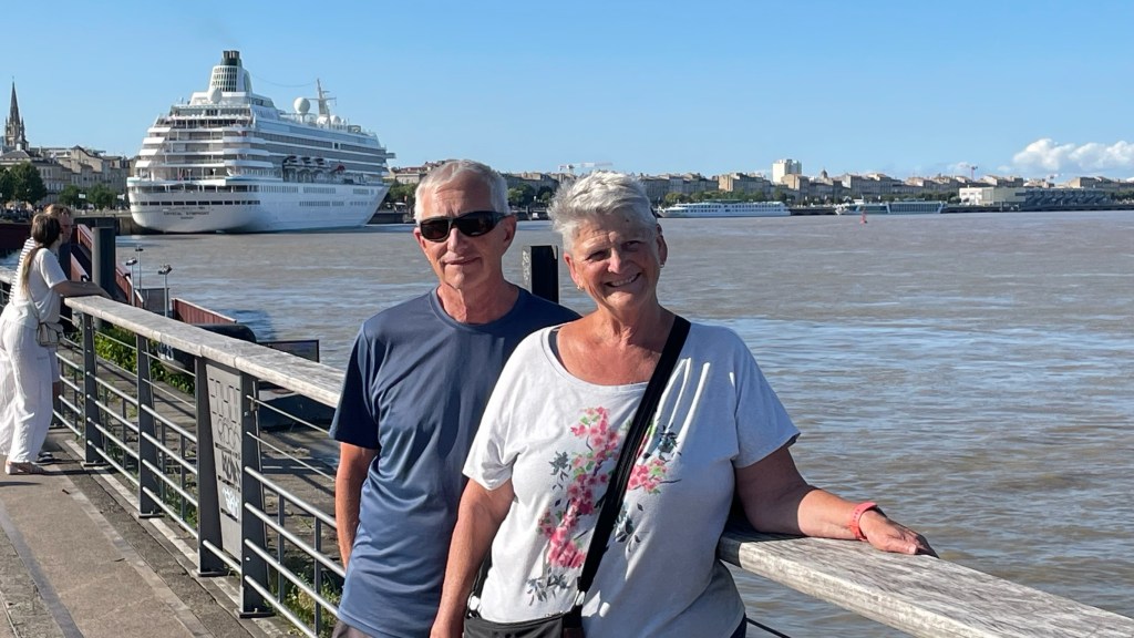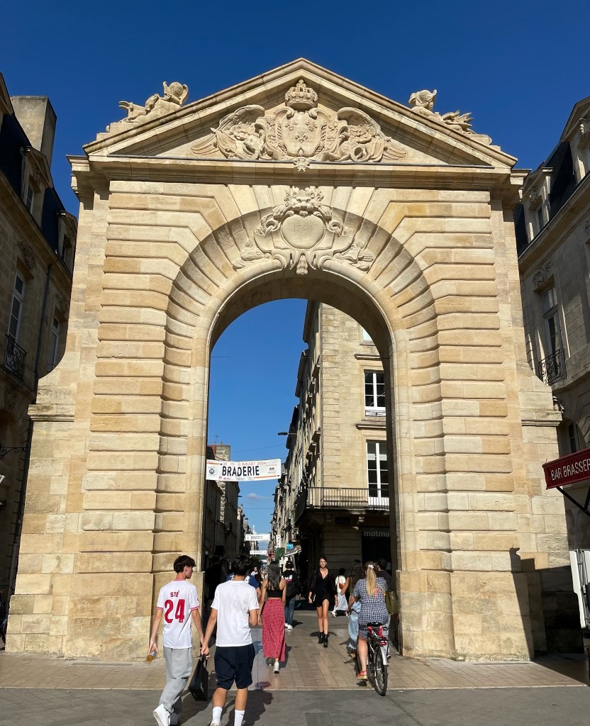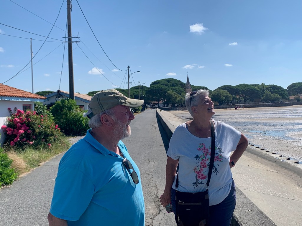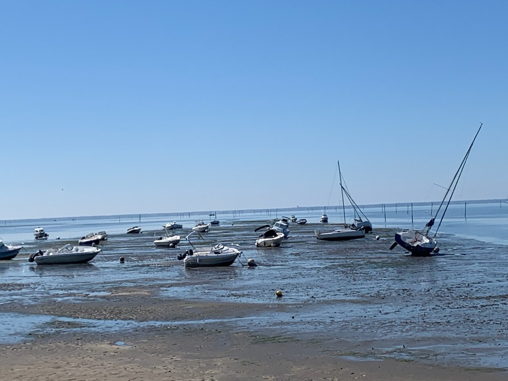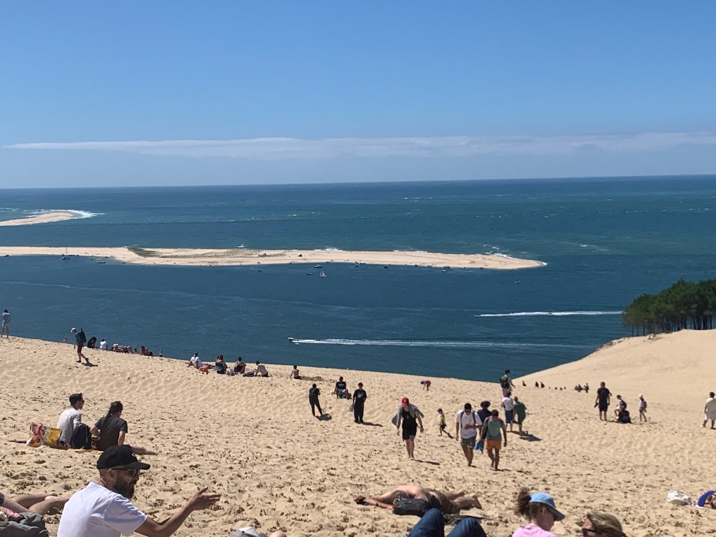 The next day, we continued south towards Bordeaux. Nick met some French people when he went to South America in 2017 and so we decided to see if they were up for visitors. They lived between Bordeaux and Arcachon, so of course we had to make a side-trip to see Le Dune du Pilat, which is the largest sand dune in Europe. It was pretty amazing but absolute hell to climb up on a hot afternoon, with hundreds of other tourists doing extracting the same thing!! But, despite her knees and hip, we made it to the top and were rewarded with some amazing views – as well as another geocache for MJ!