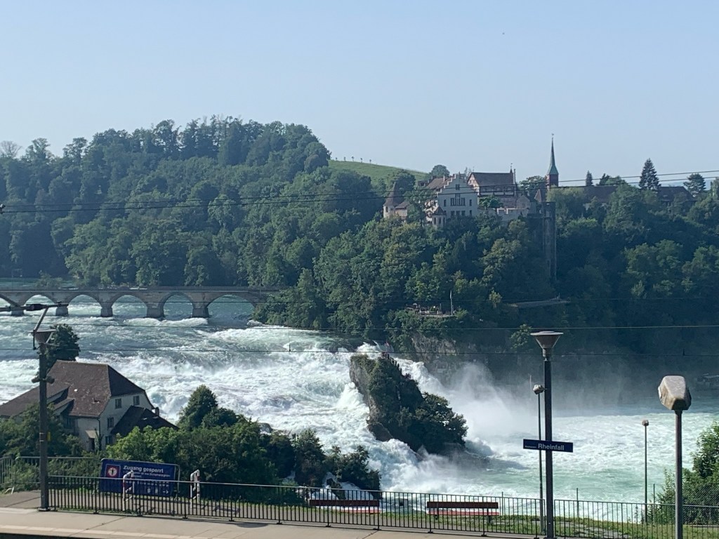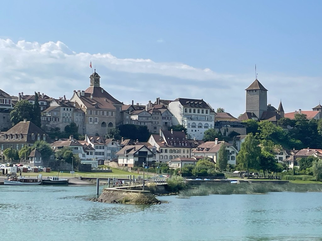 Our next country after France was to be Switzerland but our route to get there had changed. Instead of trying to avoid the dreaded péage and find a route through the Alpes that wasn’t closed due to roadworks, we had the joy of tootling down the German autobahn, which is free for cars and non-truck vehicles and we could make a detour to the RitterSport factory which is our favourite German chocolate. We overnighted in Singen, bought a Swiss Vignette (sticker to use the Motorways), stopped in Schaffhausen to look at the Rheinfels before heading down to a place called Sugiez.