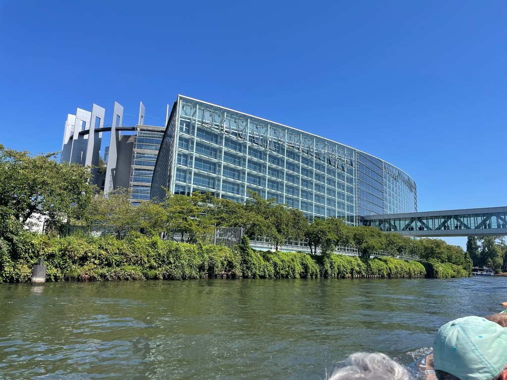 After some big kilometers and finally submitting to using the péages (our wallets are still wincing), we reached Strasbourg but there was nowhere to stay, so we slipped over the border to Zehl and stayed in a very convenient Stellplatz (German version of an Aires du Camping). The Stellplatz was only about 100m from the Rhine River, which forms the border and there was a very convenient tram that we could catch over the border into Strasbourg.