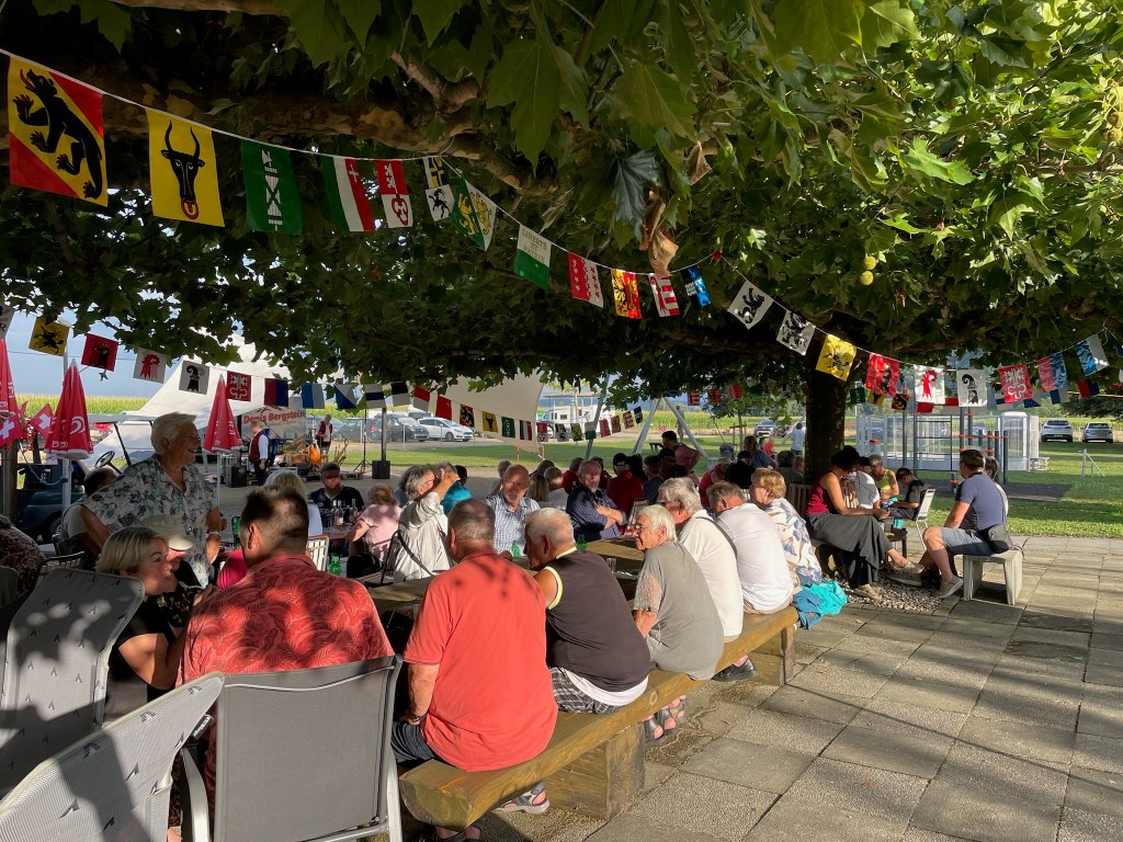 In Sugiez, we visited another traveller that Nick met on his journey in South America. Felix had booked a site for us in the Campingplatz where he lives – this was necessary because we were going to be staying there for Swiss National Day (1st August) and this would be an extremely busy time with everyone wanting to do something festive. And festive it was! There was a Fiesta in the Campground, with Bratwurst or Raclette available to eat and a choice of beer, local wine, or a variety of non- alcoholic options. They had a two man band playing until midnight and at about 10pm, they had a fireworks display.