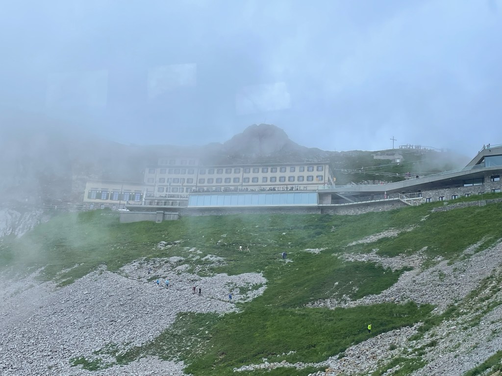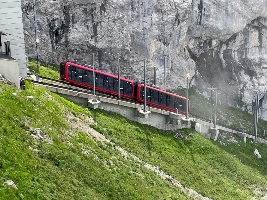 We also spent a day going to the top of Pilatus – no, not on foot but in the Cable Car and the Cog Railway – though we did see a lot of hikers walking up, some even pushing a pram! On a previous trip to Pilatus in winter, Lucerne was covered in fog but at the top of the mountain, above the fog, it was clear skies with lots of warm sunshine. For this visit, whilst it was sunny and hot down the mountain, at the top it was covered in cloud and quite cold. If you managed to find a break in the clouds, you felt a bit of warmth but those breaks were few and far between!